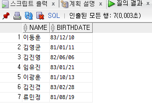 WHERE TO_CHAR(BIRTHDATE, 'YY') BETWEEN 81 AND 83;