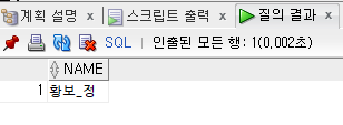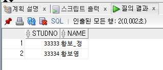 위 예제에서는 와일드문자를 삽입하지 않아 앞에 황보라고 적혀있는 모든 학생의 이름을 출력했다.