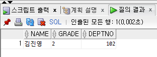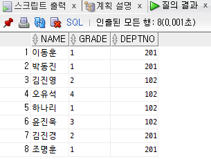 SELECT NAME, GRADE, DEPTNO