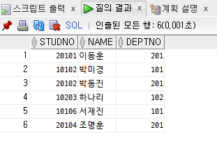 SELECT STUDNO, NAME, DEPTNO