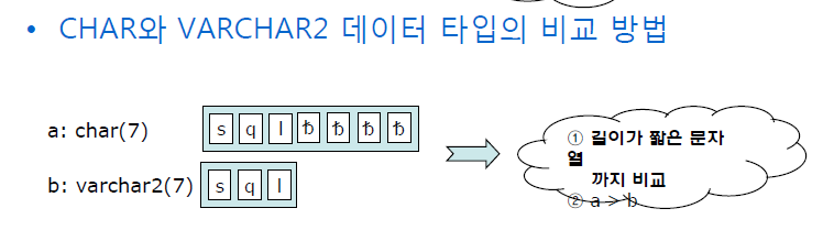 2) CAHR와 VARCHAR2 데이터 타입의 비교방법