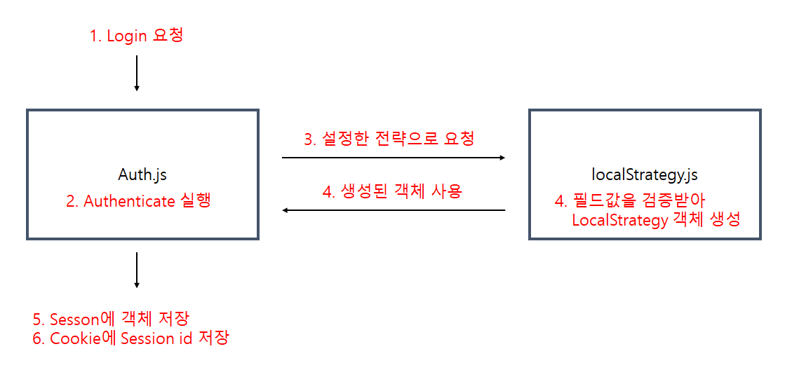 // 예를들어 local로 지정해놨다하면 passport/localStrategy.js가 실행되어 회원검증을 함