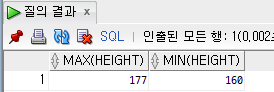예제) 102번 학과 학생중에서 최대 키와 최소 키를 출력