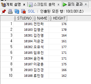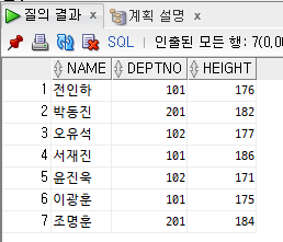 예제) 각 학과 학생의 평균 키보다 키가 큰 학생의 이름, 학과번호, 키를 출력