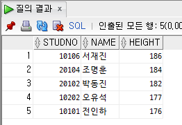 예제)모든 학생중에서 4학년 학색중에서 키가 가장 큰 학생보다 키가 큰 학생의 학번, 이름, 키 출력