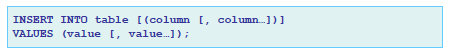 - INTO절에 명시한 칼럼에 VALUES절에서 지정한 칼럼값을 입력